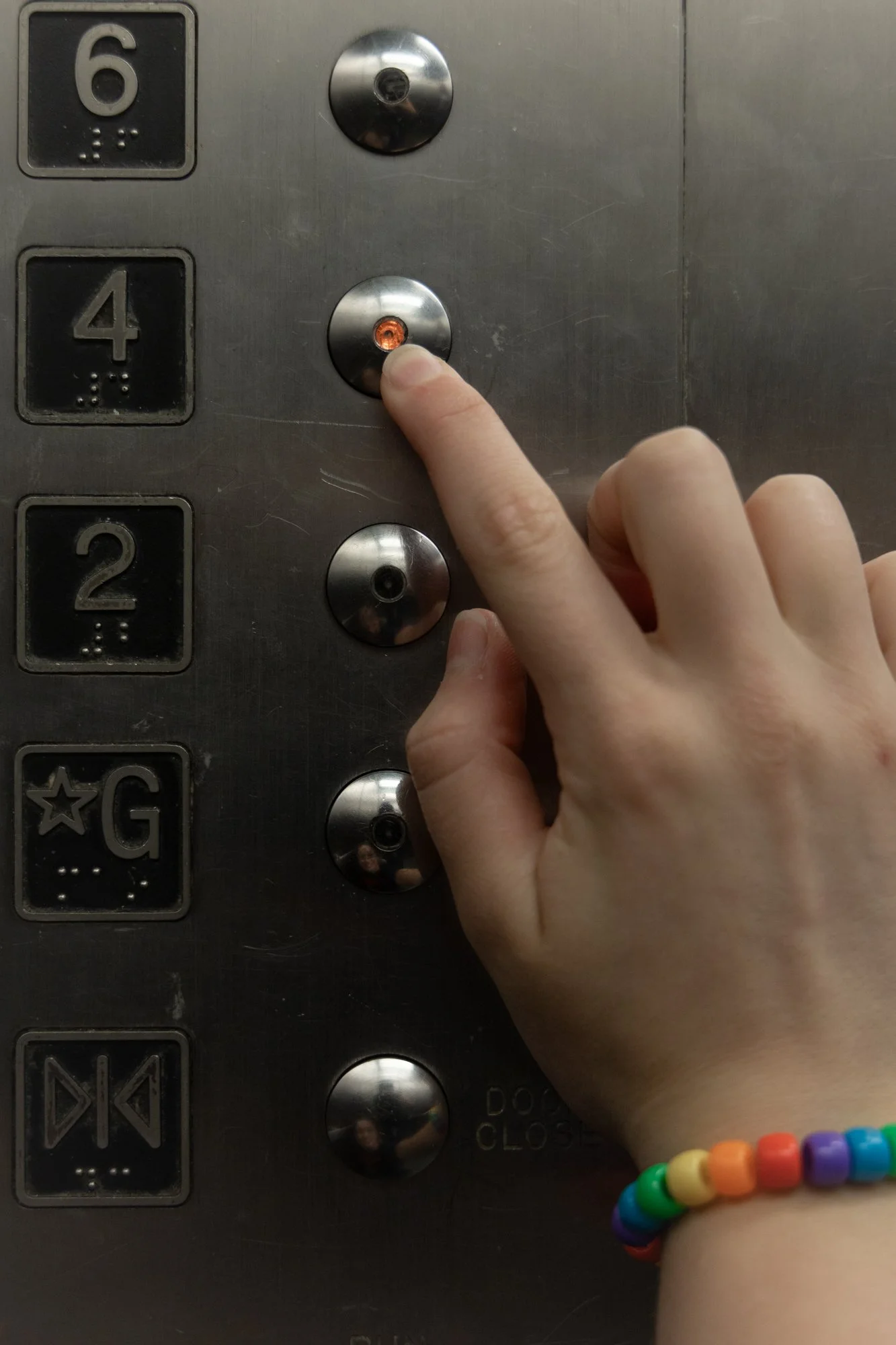 Isabella “Bella” Carter presses the button to the 4th floor in DellPlain Hall, where she lives in the LGBTQIA+ Living Learning Community (LLC).